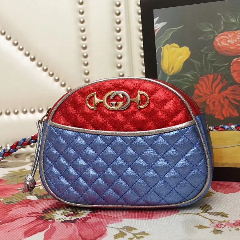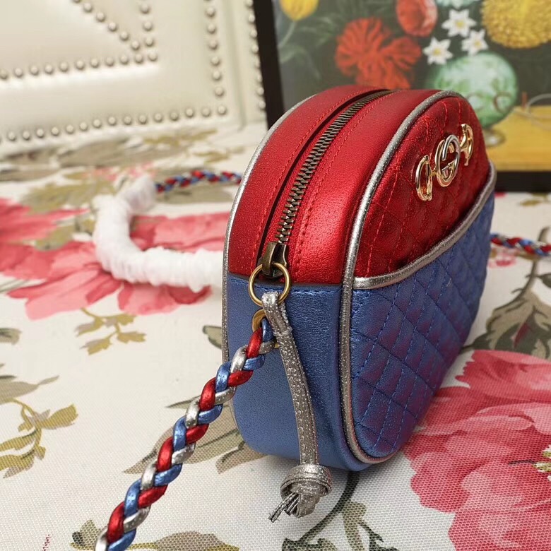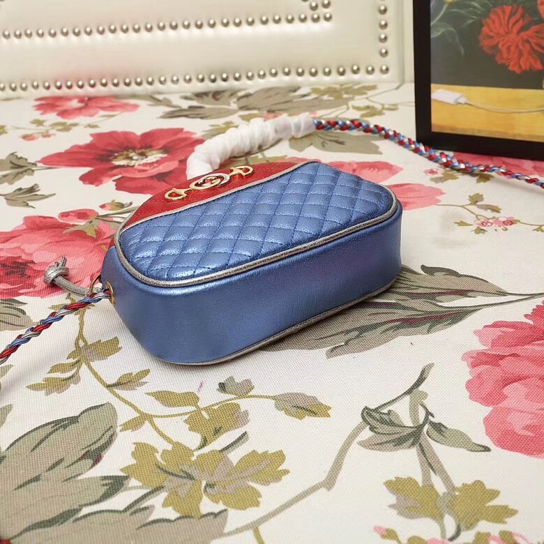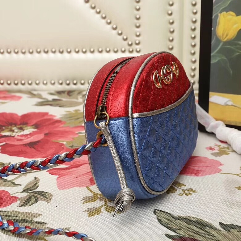 - 534951 GUCCI 2018秋冬 层压皮革 色彩拼接 迷你手袋 红拼蓝