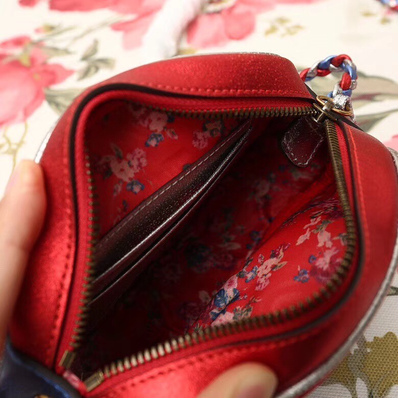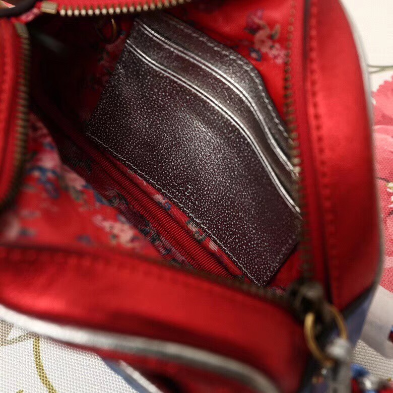 - 结构:红色花卉印花衬里,互扣式G马衔扣,拉链封口,两个内部卡片隔层