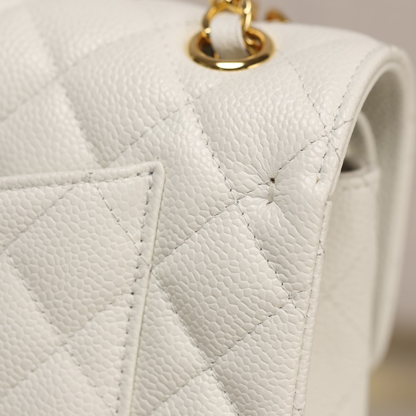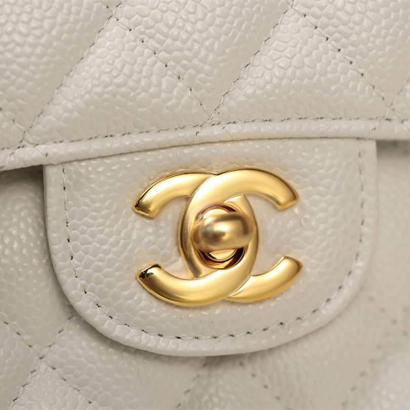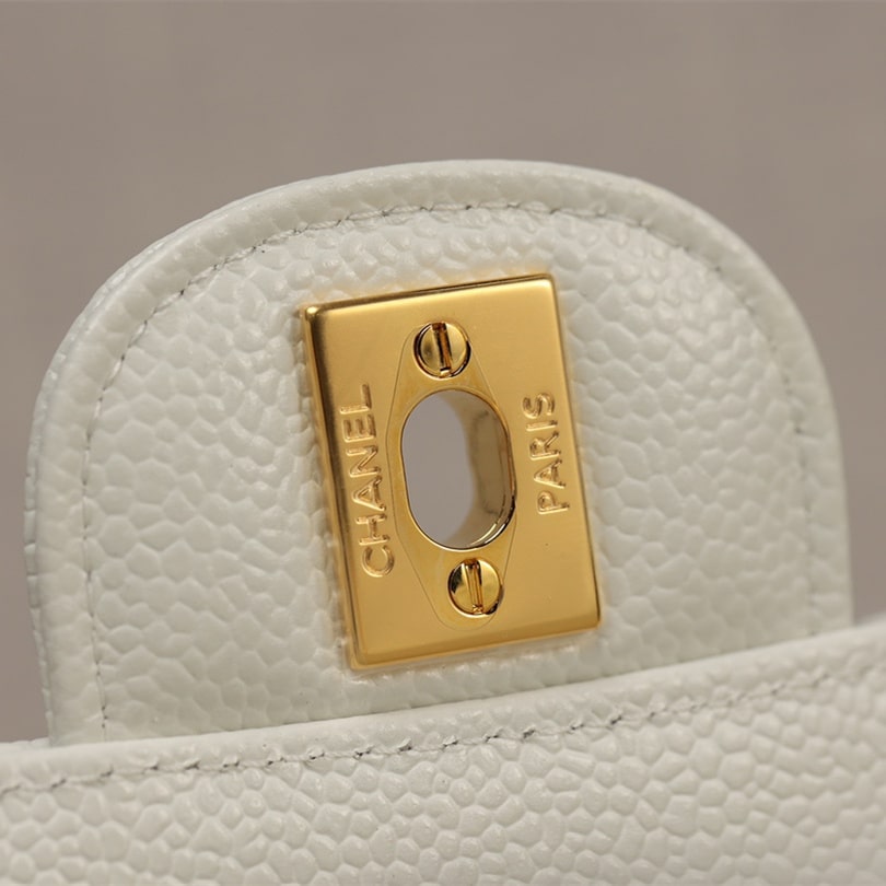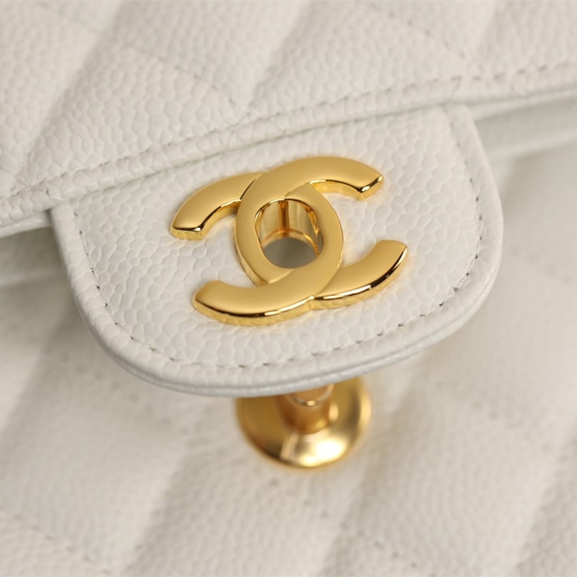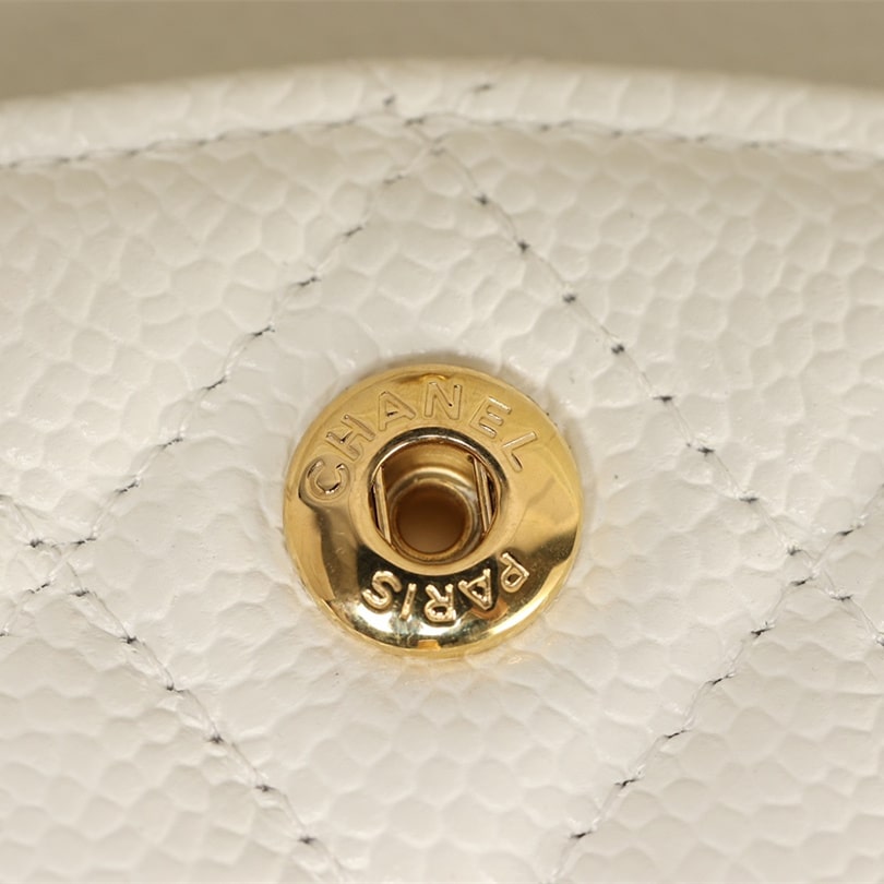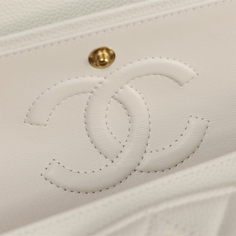 手工包包标準的还原了正品大小细节处理,从皮质的应用到每一针一线精準达到Chanel天花板级别.这一只CF系列口盖包以Incas中球纹小牛皮纯手工製作而成,经过特殊处理白色的皮革表面附有明显的球纹颗粒感,手感杜绝粗糙,达到丝滑流畅的包身.